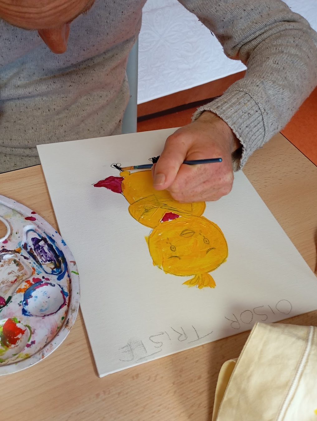 Pendant plusieurs mois, les résidents des différents services (Accueil de jour, Foyer de vie et Foyer d’aide médicalisée) ont participé à des ateliers de peinture pour illustrer, scène après scène, cette belle histoire.