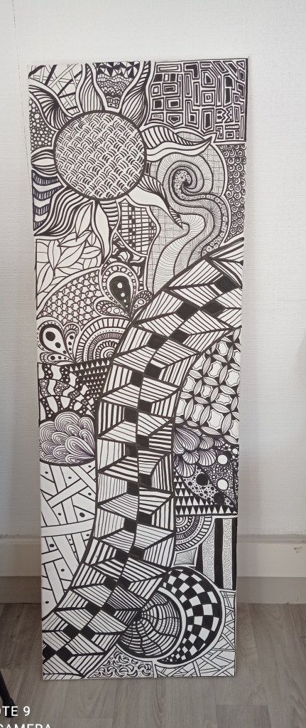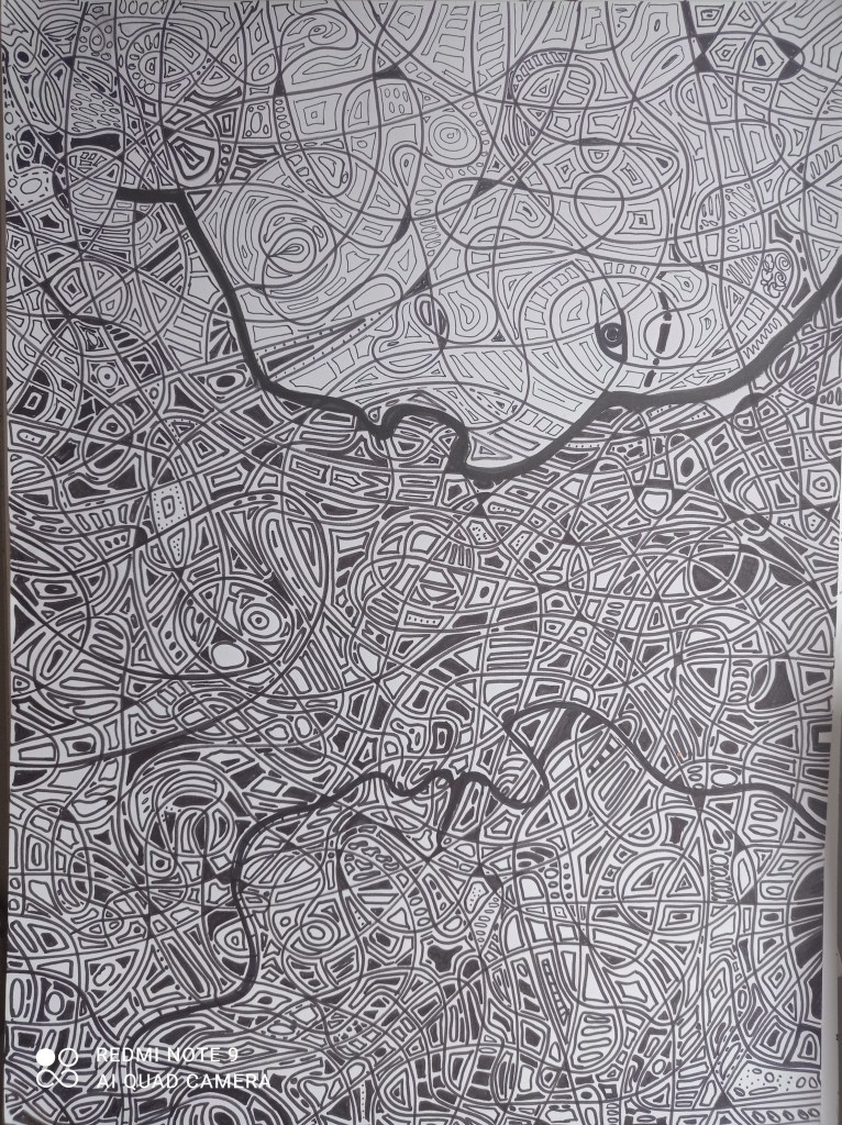 Il s’agit de réaliser des motifs structurés et répétitifs. Le Zendala, le doodle, évoquent les mêmes pratiques et se rapprochent du « wild style » ou du graffiti. C’est réaliser des dessins aléatoires, dans toutes sortes de situations, chose que l’on fait souvent instinctivement, au téléphone par exemple, un stylo à la main.